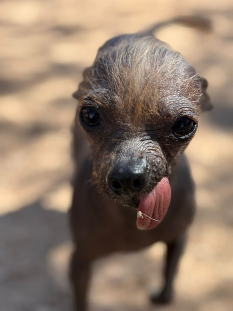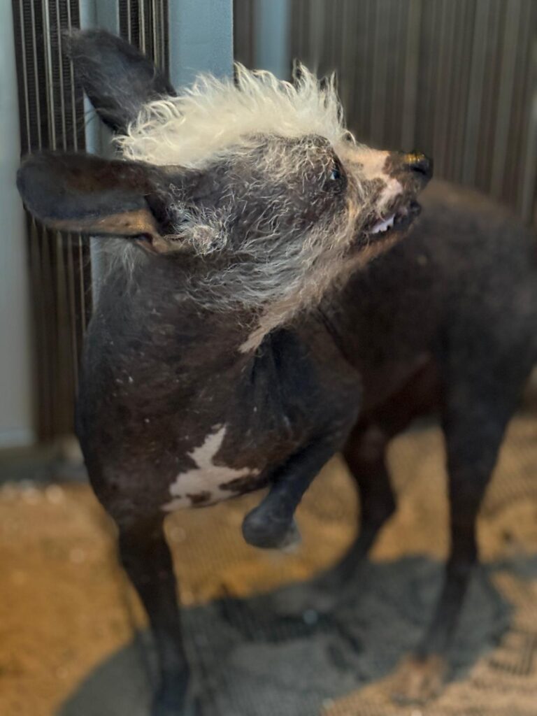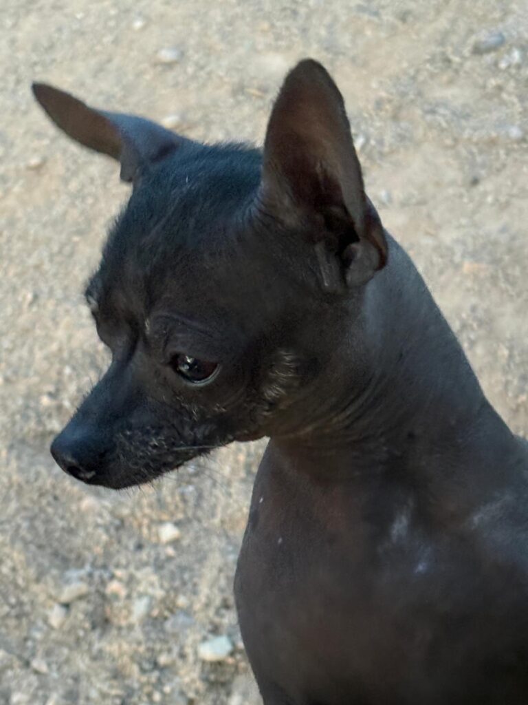 Karlos is geboren op 07-10-2023 als enig pupje van Melle. Mama kon zelf geen melk geven, dus is Karlos met de fles groot gebracht. Kruising naakthondje en papa is onbekend. Karlos is inmiddels geadopteerd.